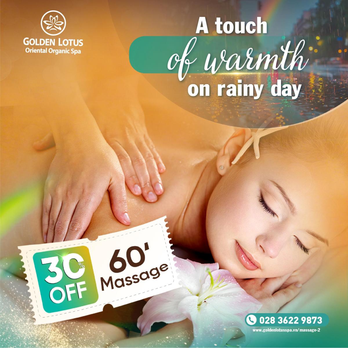 60′ MASSAGE FOR A WARM RAINY DAY AT GOLDEN LOTUS HEALING WORLD